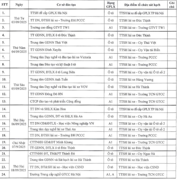 Cập nhật lịch thi sát hạch lái xe tháng 9/2025 tại Hà Nội
